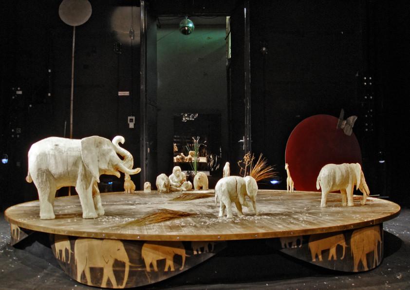 Holztiere für 'Elefanten vergessen nie' der Pyromantiker A.G. Berlin (mit nur einem Werkzeug hergestellt: die Kettensäge)